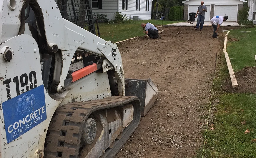 We prepare driveways for gravel, asphalt or concrete surfaces with proper grading for long-term performance and drainage. If your existing driveway is pooling or sloping toward the house, we’ll regrade it and install trench drains or corrective measures to redirect water where it belongs.